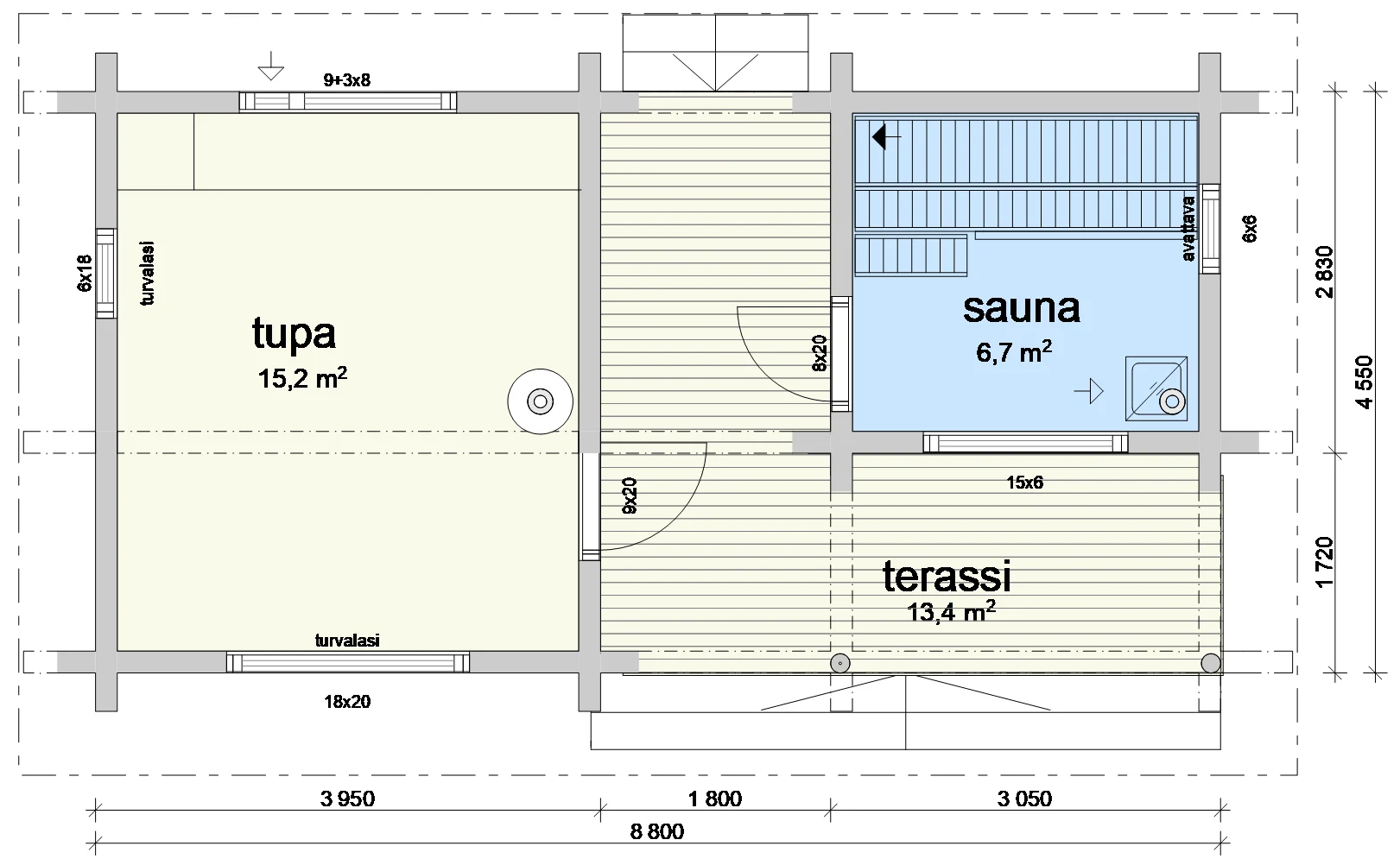 Pihasauna terassiton Pihasauna on moderni koko perheen löylyttelypaikka.
